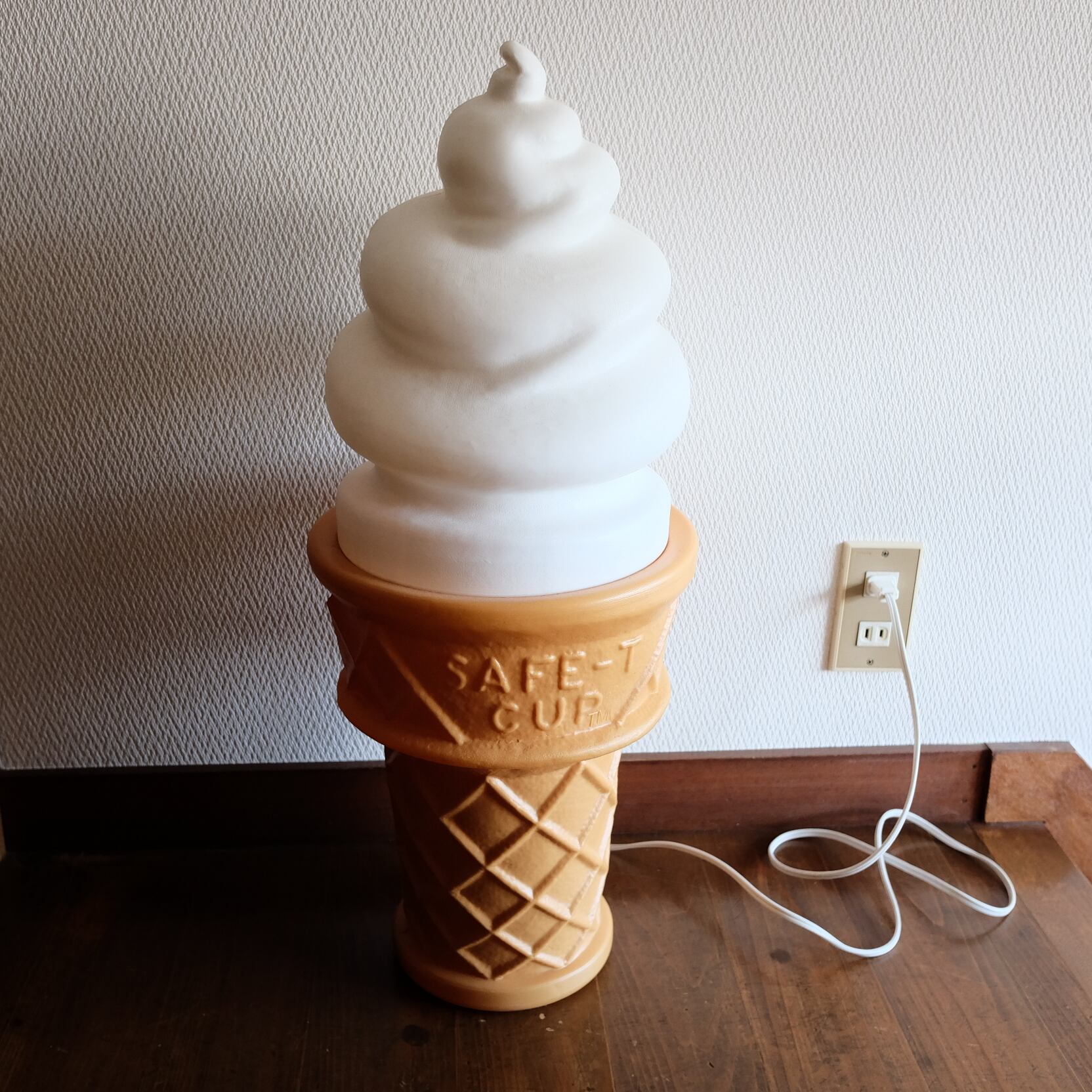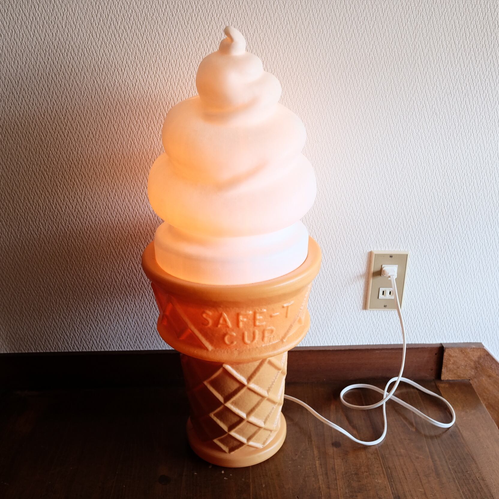アメリカのアイスクリームショップ等で実際に使用されているコーンブランド"SAFE-T"の店頭用ディスプレーランプです。レプリカもあるようなんですが、こちらはとてもレアな60年代のオリジナルで、アメリカでは1000ドル以上で販売されているショップもあります。